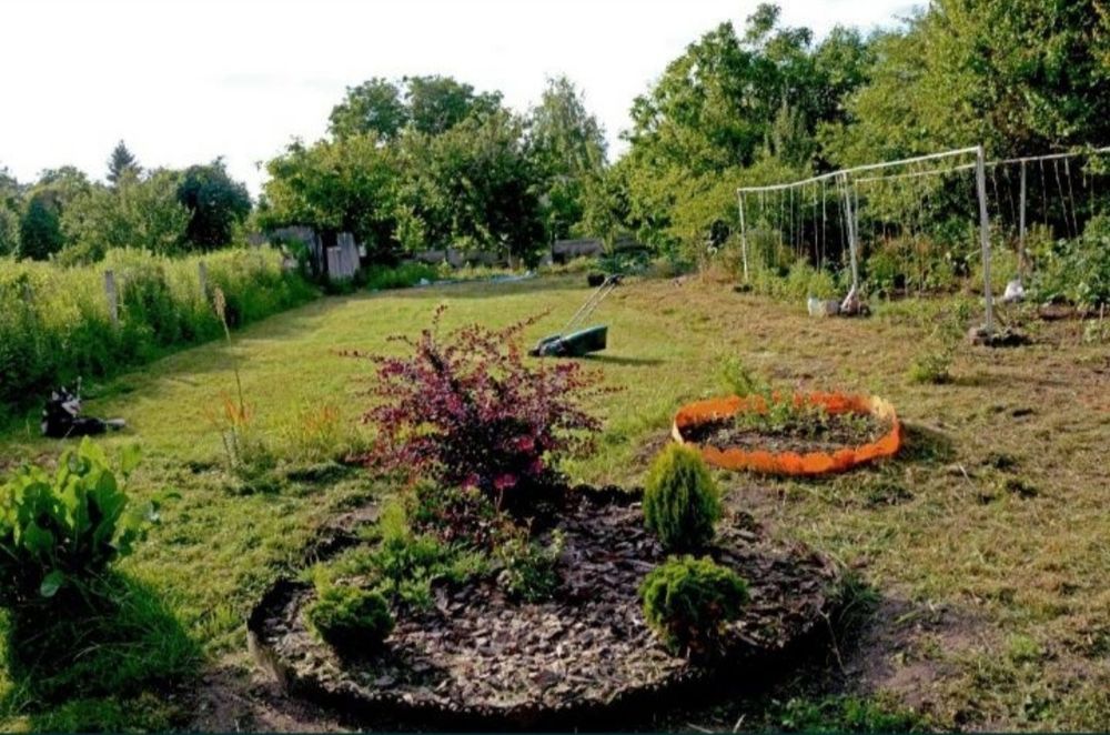 - На ділянці багато молодих саженців, квітів.