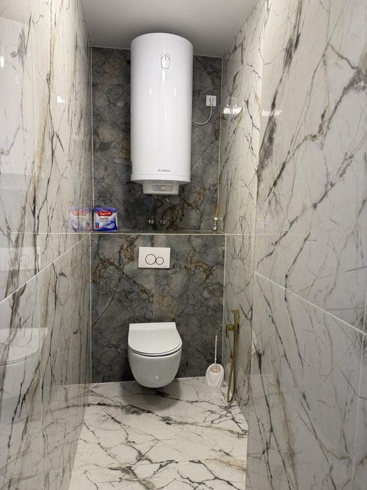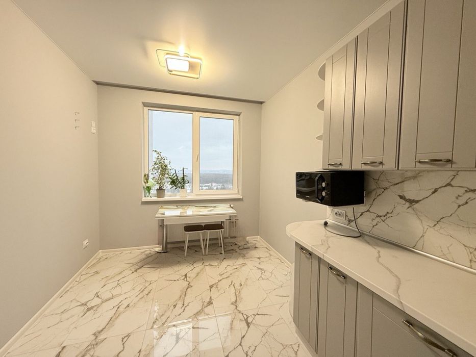 • Дизайн: сучасний мінімалізм, світлі тони, мармурова підлога.