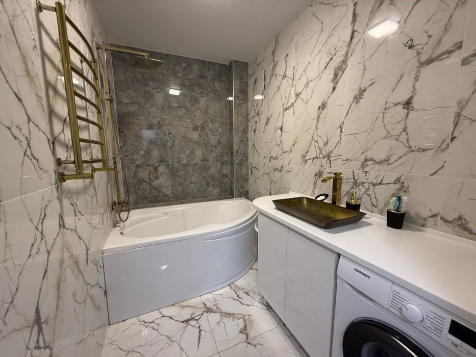 • Комфорт: велика кутова ванна, сантехніка «під золото», багаторівневе освітлення.