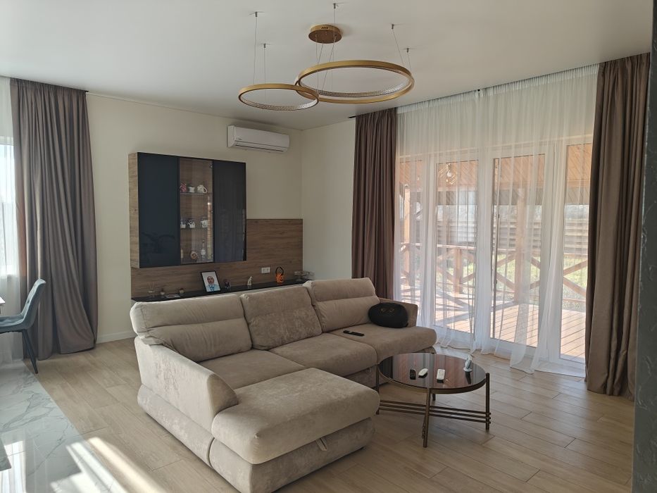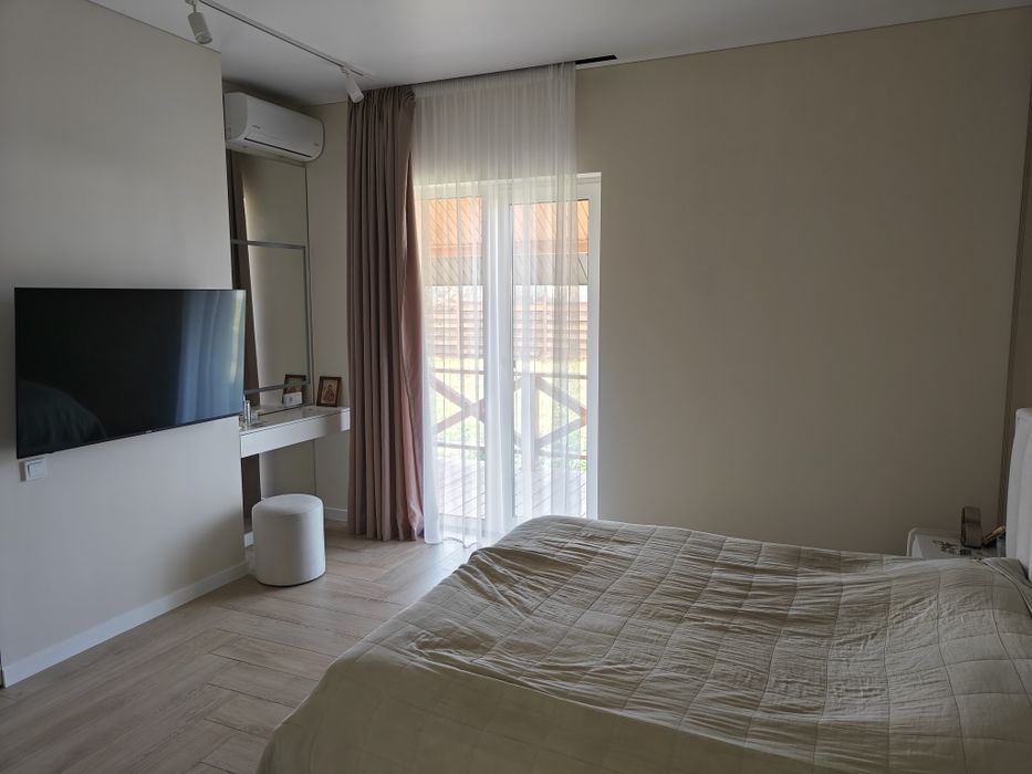 Формат дома: Гостиная-кухня , спальня, 2 детских комнаты, два с/у (душ, ванна), 2 гардиропа, летняя терраса, крытая парковка на 2 машины + 2 место без навеса, откатные ворота с автоматикой. Охрана, видеонаблюдение, интернет. Электричество с защитой от перепадов напряжения: реле + стабилизаторы. Установлен новый инверторный генератор на 7-8 кВт. Выведена розетка для зарядки электромобиля. Есть разводка под мангальную зону, сарай и для ландшафта. - 2 Кондиционера. Электрокотел. Теплые полы по всему дому. Яма-септик. Скважина 54м с фильтрами воды. Мощный насос. Есть осмос. Вся техника абсолютно новая! Вся мебель делалась по индивидуальному заказу. Очень тихое и живописное место. Рядом речка Уды. Есть свой выход в супермаркет АТБ! Порядочные соседи.