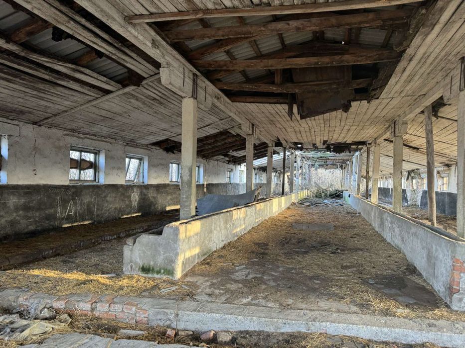 Корівник + свинарник | 7 га землі | світло | поза селом; Продаються окремо стоячі приміщення корівника та свинарника, розташовані поза межами населеного пункту. Об’єкт підходить для відновлення тваринництва або використання під складські чи виробничі потреби.