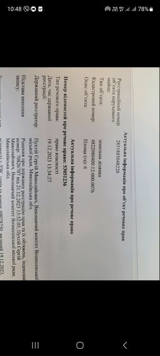 | Земельна ділянка: |