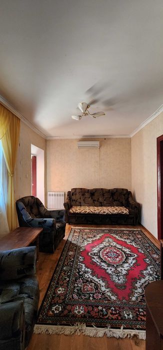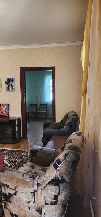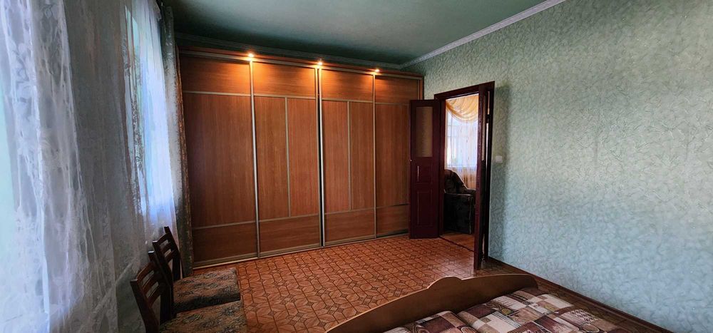 У будинку 3 кімнати, коридор. На стінах шпалери, на підлозі леноліум. Вікна дерев'яні у доброму стані. Опалення газове (котел), кондиціонер. Два дивани, два крісла, величезний шкаф купе, двухспальна кровать.
