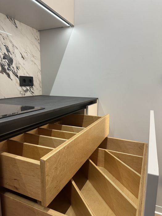 • Кухня-студія — світлий, спокійний простір з м’яким диваном та зоною для відпочинку.
