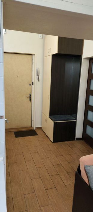 • Паркет у кімнаті, плитка від входу до кухні