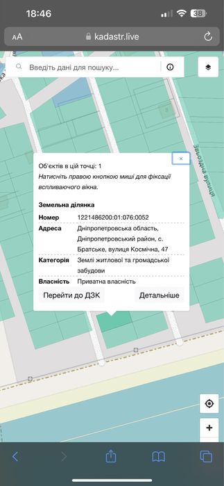 Продам участок 10 сот.; Продам свой участок в с. Братском на вул. Космична 47. Рядом идет застройка , свет по улице. Эпицентр, новая линия, ж/м тополь в 8 км. Документы в порядке.