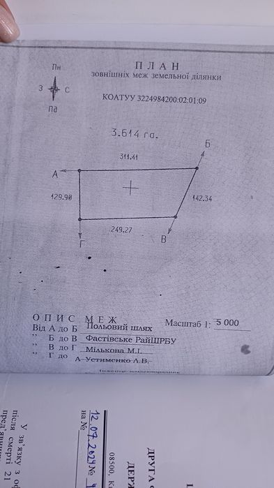 Продаю земельний пай; Продажа земельного пая в фастівському районі. 3,614 г. Земля обробляється.