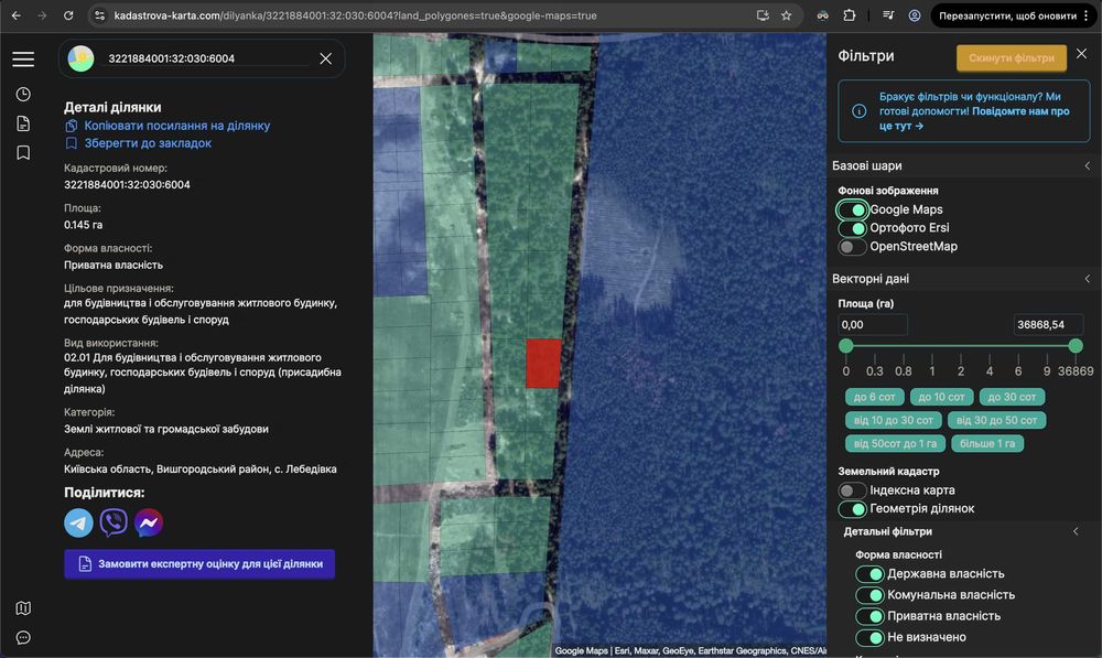 | Земельна ділянка: |