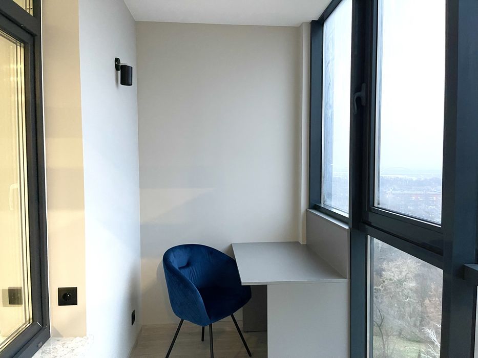 З лоджії з панорамними вікнами відкривається чудовий вигляд на місто, ви будете бачити одну з найкращих памʼяток українського барокко, перлину української історії Софію Київську, а також Андріївську церкву, замок Річарда і Дніпро.