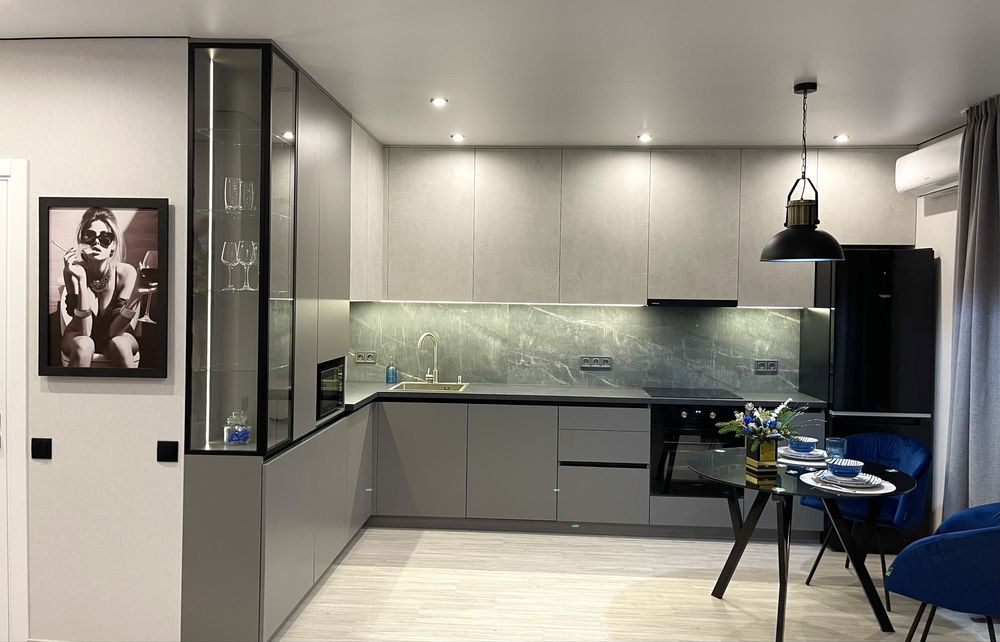 Кухня обладнана всім необхідним, повністю нова техніка, вмісткий холодильник, посудомийна машина, індукційна плита, духовка, мікрохвильова піч, а також весь необхідний посуд.
