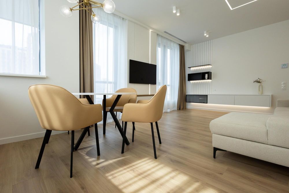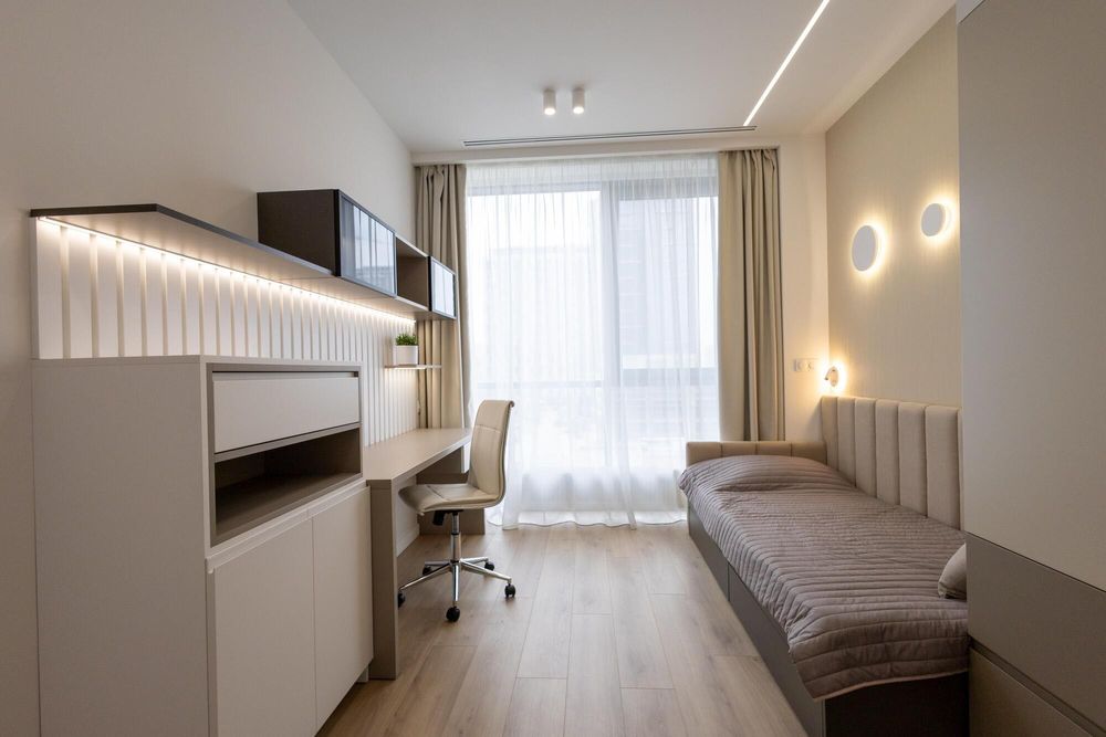 Квартира, полностью укомплектованная дизайнерской мебелью, современной техникой (BOSCH) и дорогой сантехникой (GROHE), канальным кондиционированием, системой «умный дом».
