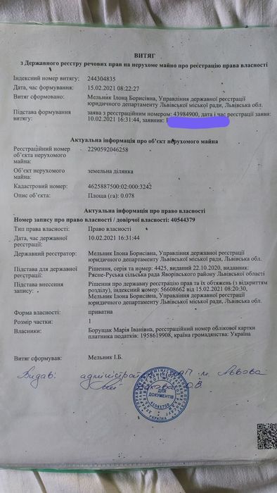 | Земельна ділянка: |