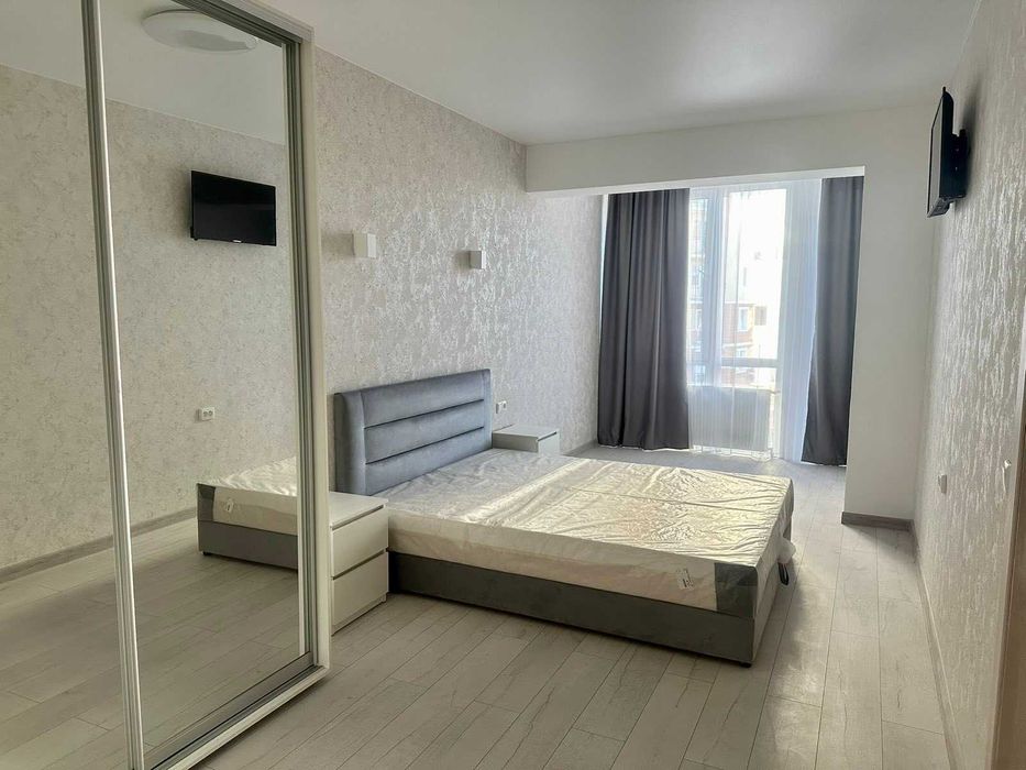 В квартире просторная спальня с 2-спальной удобной кроватью, большой шкаф-купе, большая кухня-студия с ,новой кухонной мебелью, со встроенной техникой, раскладной 2-спальный диван. Полная комплектация бытовой техники: ПОСУДОМОЙКА, стиралка,, кондиционер,вытяжка, холодильник, газплита с духовкой, Смарт ТВ,, микроволновка!
