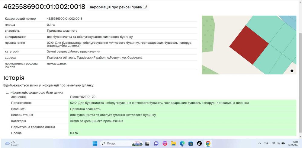 Кадастровий номер: 4625586900:01:002:0018