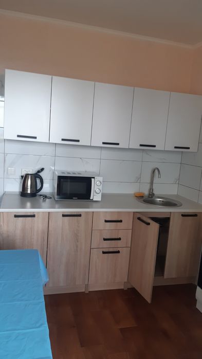 Є необхідні меблі, побутова техніка: пральна машина, холодильник, бойлер, мікрохвильова піч, чайник.