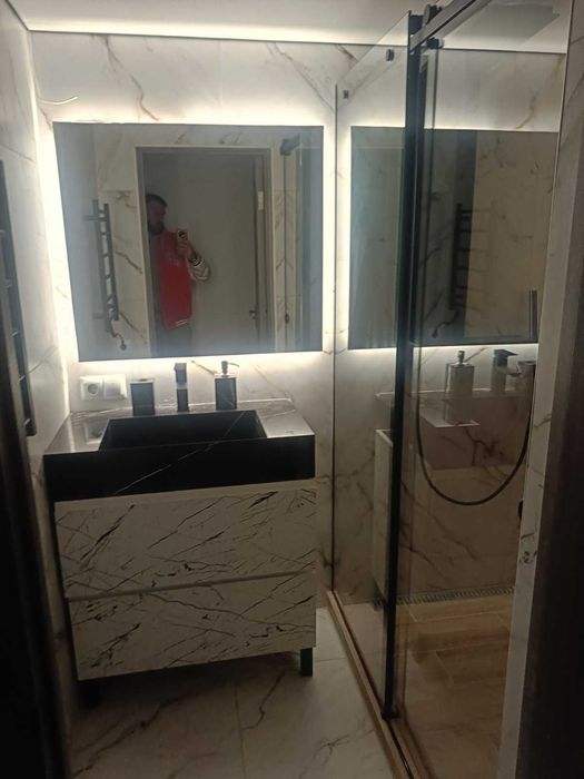 Свіжий дизайнерський ремонт. Квартира повністю гідроізольована та утеплена, підлога екстрадований пінопласт + стяжка. Ванна, душова, коридор встановлена тепла підлога. Вентиляція, рекуперація та кондиціонування.