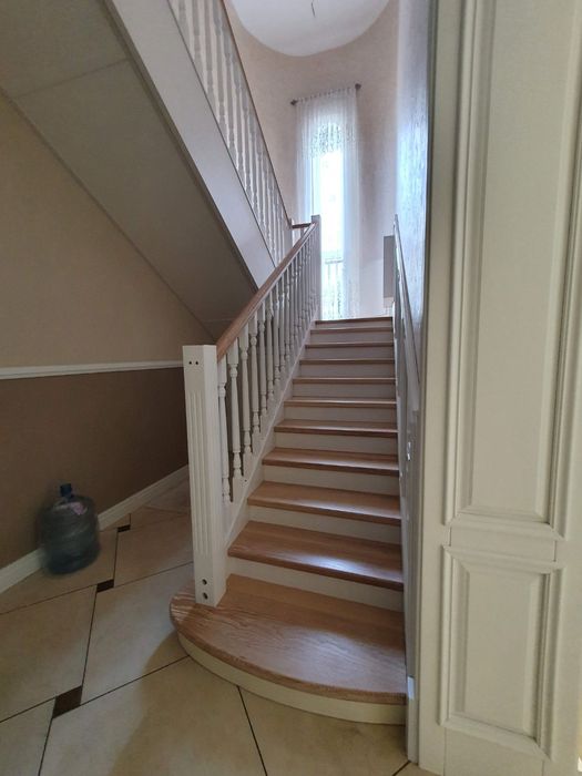 Сходи на другий поверх та повністю вся столярка зроблені з натурального дерева.