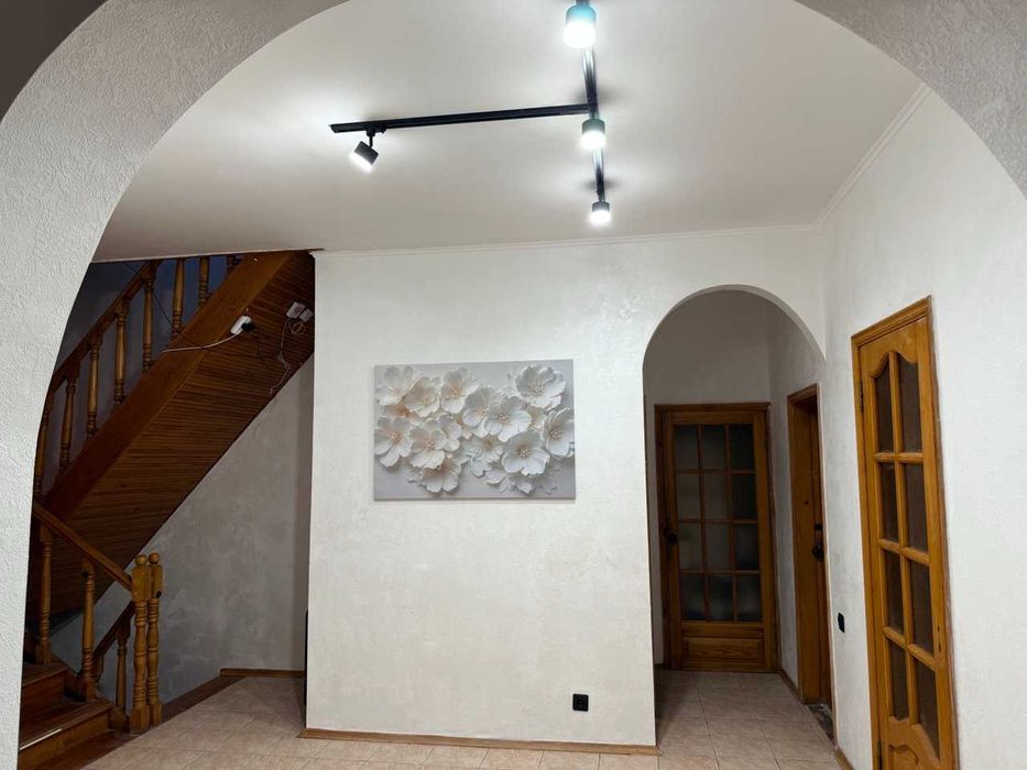 2 поверх 115кв.м. три спальні по 17кв.м, велика гостьова зала 45м., гардеробна, душ, 2 окремі санузли. В 2025 зроблен косметичний ремонт.