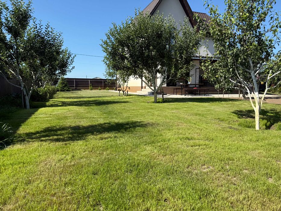 На території земельної ділянки розташований сад з плодовими деревами, по периметру ростуть туї та ялинки, газон, краса неймовірна.