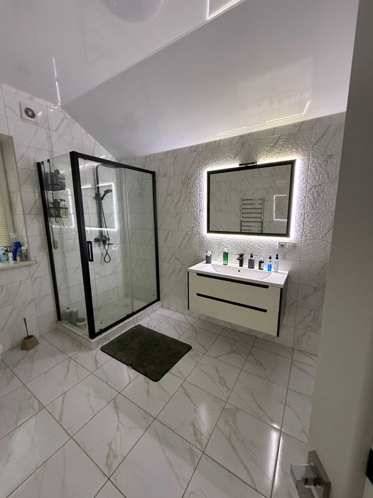 Площа: 126 кв.м.: кухня 30 кв.м., з панорамними вікнами, з виходом на терасу, 3 спальні кімнати, 2 санвузли (на 1 та 2 поверхах по 9 кв.м.) + гараж 35 кв.м., + підвал (укриття 35 кв.м - у разі повітряних тривог це безпечне місце), тераса 30 кв.м