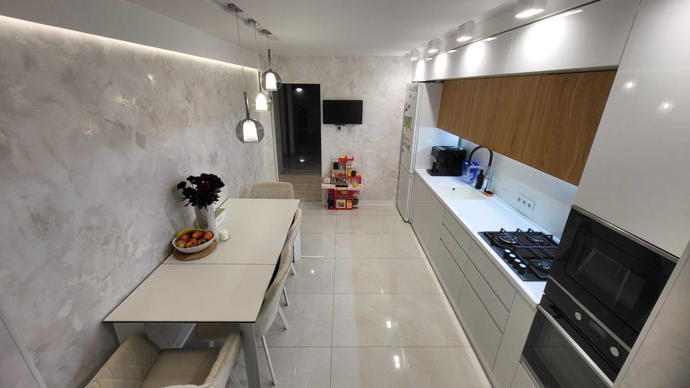 Світла, затишна оселя з трьома окремими спальнями. Будинок збудований у 2020 році, тож усі комунікації та інфраструктура нові та сучасні. Загальна площа квартири становить 111,9 м². Простір створений за індивідуальним дизайн-проєктом з використанням високоякісних матеріалів.