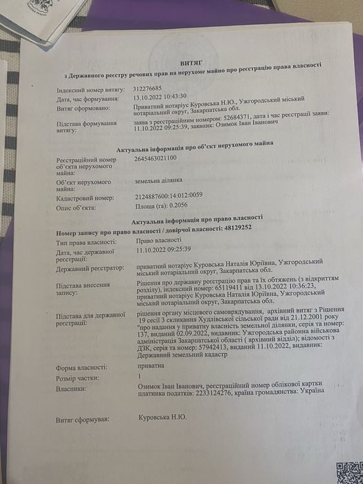продам землю Закарпатська область Ужгородський район село Холмець