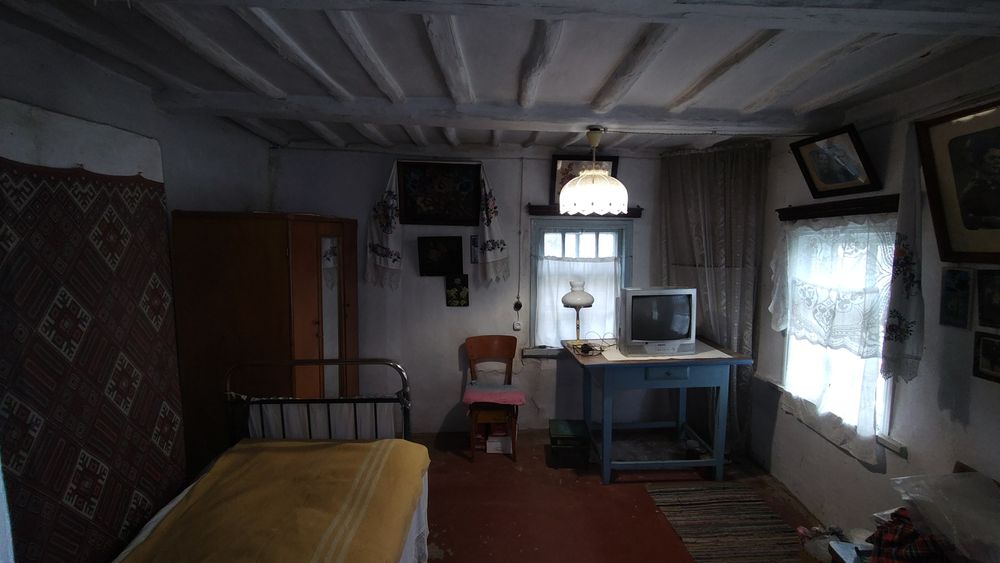 1. Хата. Дві груби (є лежанка). Зручне горище. Коридор 1(Веранда). Коридор2. Велика комора (там де багато банок на фото). Кухня. Дві спальні.