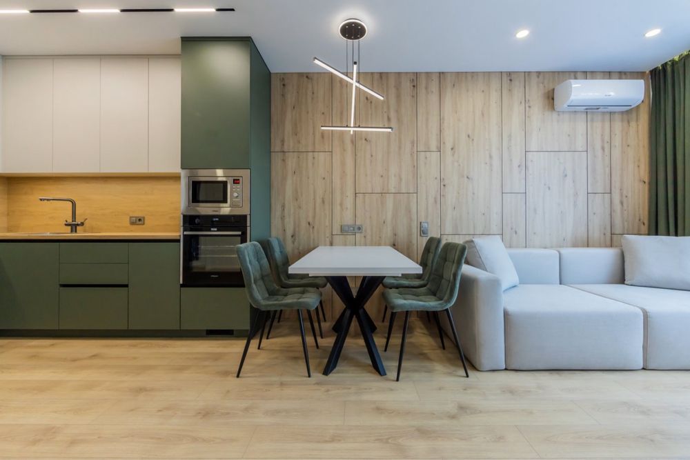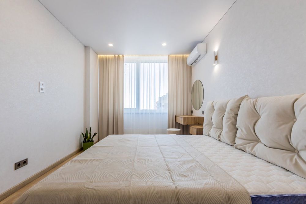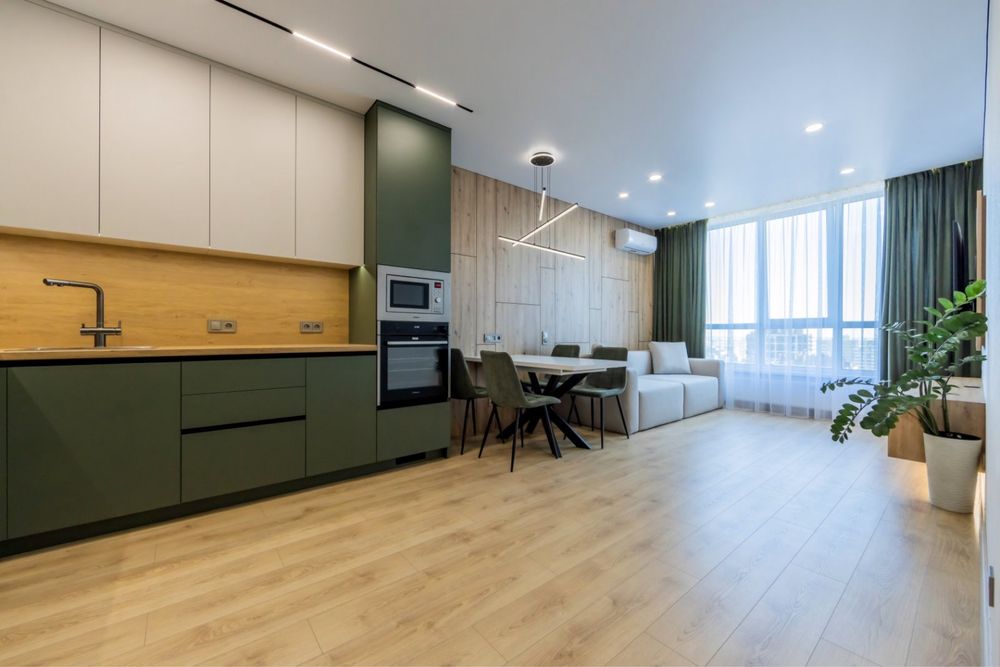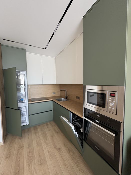 Квартира нова з сучасним та функціональним комплектуванням ( тепла підлога в санвузлі , коридорі та кухні, вбудований холодильник, посудомийна машина, варильна поверхня, духова шафа, витяжка, мікрохвильова піч, телевізор 55 Qled ,два кондиціонера ,бойлер) вся техніка нова та якісна.