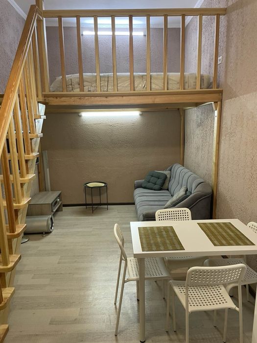 Приморський; Однокомнатная квартира на земле; В квартире сделан ремонт, комната разделена на 2 уровня. Есть все необходимое, заходи живи. Находиться в очень классном районе, рядом с площадью Толбухина. Рядом есть все. Недалеко от моря. Есть свой двор. Доп фото по запросу. Потолок 5,5м