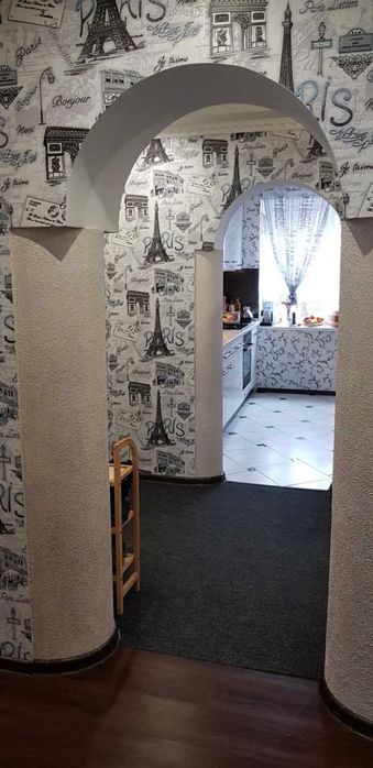 Єдина 4х кімната квартира у центрі міста. Будинок – червона 5-поверхівка, захована між іншими будинками, подалі від дороги, поруч із продуктовим магазином «Парус». До центру міста – лише 3 хвилин пішки, школа та дитячий садок – у 2 хвилинах ходьби. На подвір’ї є дитячий майданчик, футбольне та волейбольне поле та турніки, лазанки.
