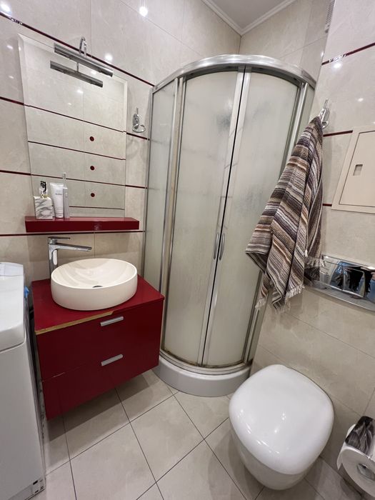 В квартире выполнен качественный дорогой ремонт с хорошим вкусом. Полностью меблирована — вся мебель изготовлена на заказ из премиальных материалов с использованием дорогой фурнитуры. Установлена вся необходимая бытовая техника. Сантехника — высокого класса.