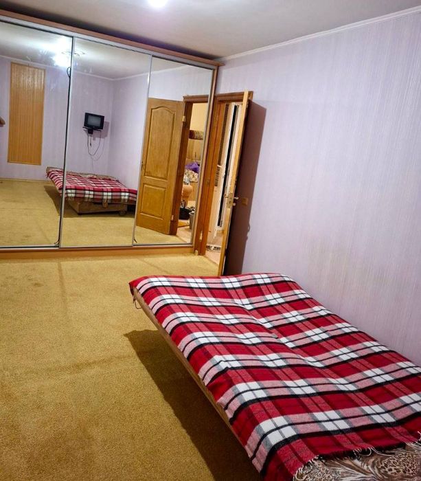 - Меблі та техніка: Квартира укомплектована всім необхідним для комфортного проживання. У вітальні розташований зручний кутовий диван. В спальні – велике дзеркальне шафа-купе та зручне ліжко. Кухня обладнана сучасною технікою, включаючи газову плиту, мікрохвильову піч та холодильник.