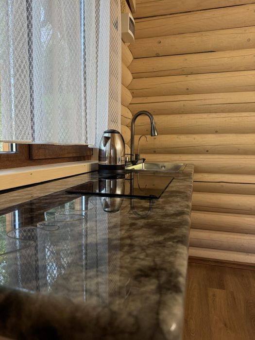 Будиночок розрахований на 4 людини, одна спальня і кімната відпочинку з великим комфортним диваном на 2 дорослих. Також є великий санвузол з підігрівом підлоги з всіма умовами, два телевізора, WiFi, холодильник, мікрохвильова піч, індукційна поверхня, чайник, кондиціонер тепло холод,