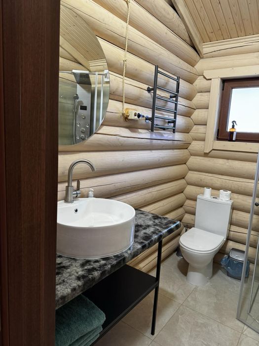 Крім того є ще верандочка (тераса) з столом і кріслами на 4 людини. Таких будиночків є декілька, всі будиночки повністю нові. Також на території є ЧАН, Банька, велике озеро з джерельною протічною водою, Тандир де власник може приготувати з ваших продукції багато смаколиків!