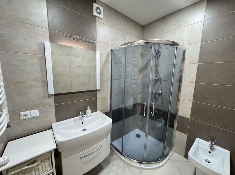 • Сучасний санвузол з душовою кабіною та біде.