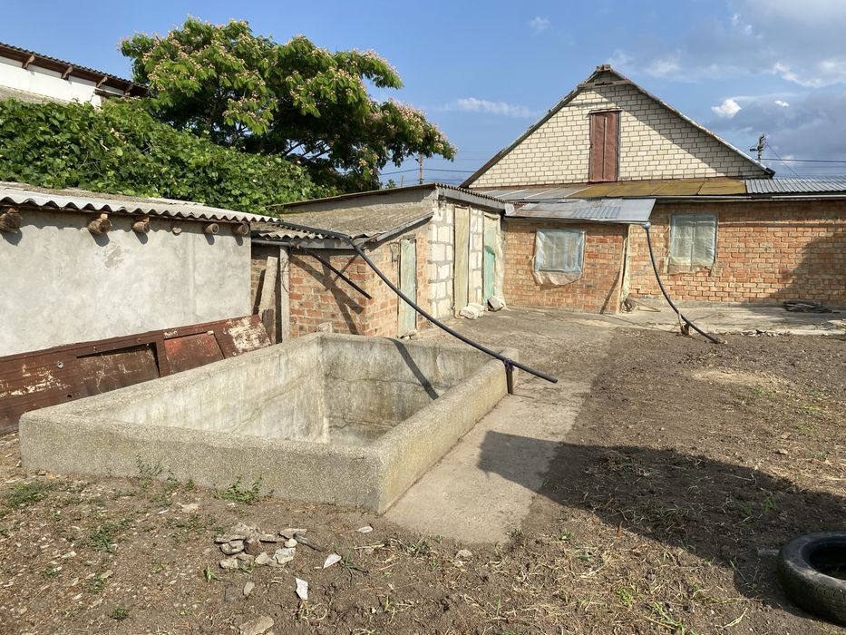 Будинок з білої цегли, гараж для автомобіля з ямою, господарське приміщення (також з ямою), цистерна, підвал в будинку, погріб з окремим приміщенням, басейн для поливу, водопровід і електрика підключені.