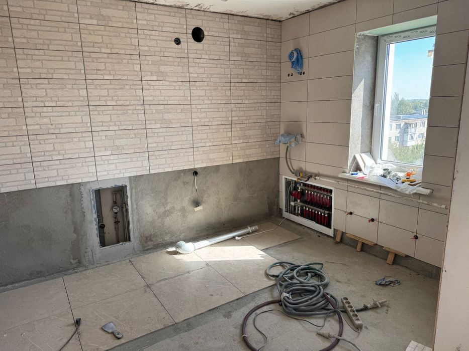 - санвузол обʼєднаний (в плитці), залишається нова акрилова ванна;