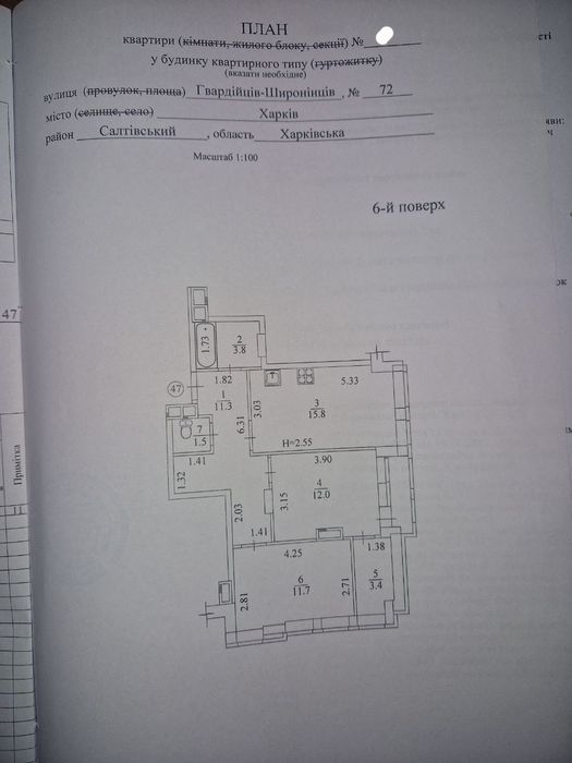 Строительное состояние. Перепланировка узаконенная комната под гардероб.