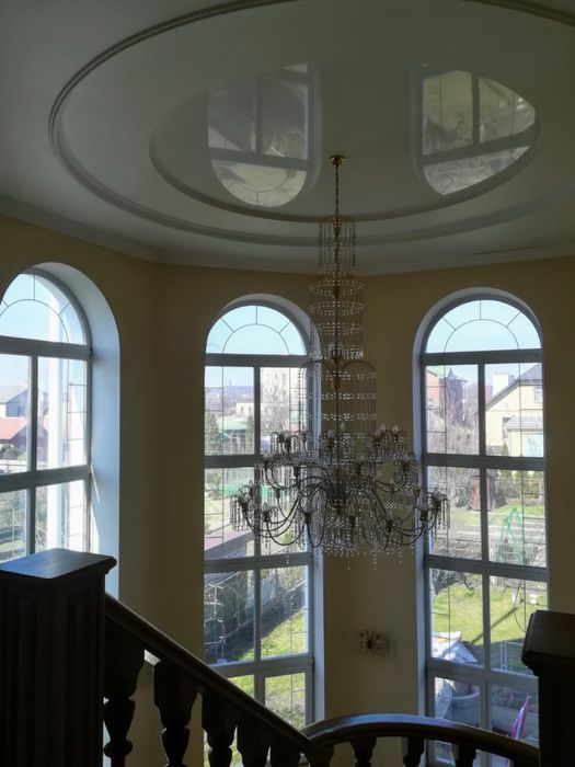 - Високі стелі, арочні вікна, декоративна ліпнина — класика, що не виходить з моди