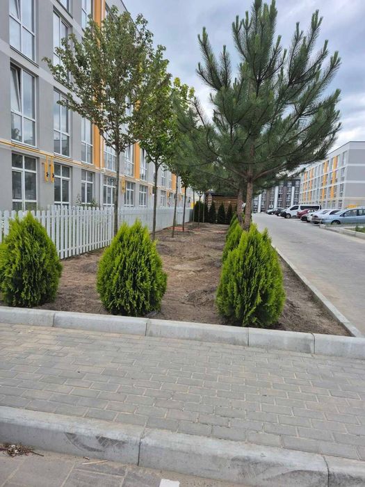 • Закрита, облаштована територія з озелененням, прогулянковими алеями та зонами відпочинку.
