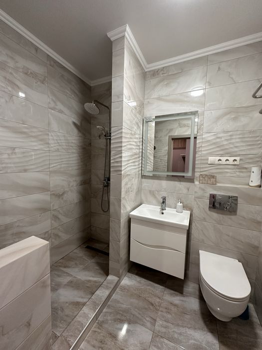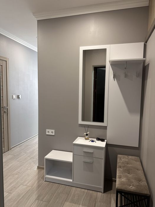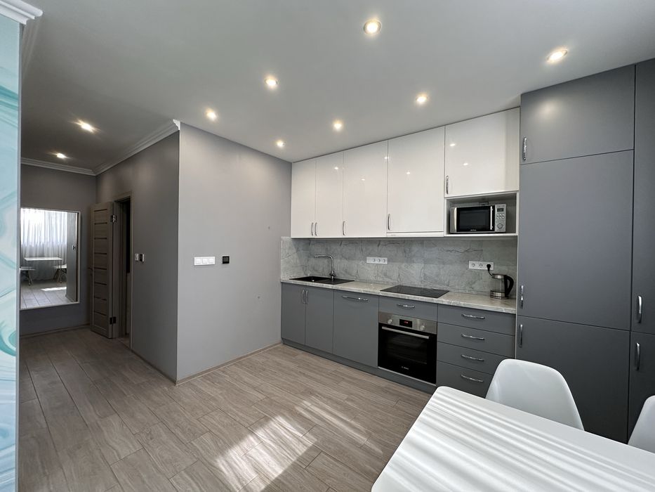 Квартира повністю оснащена якісними меблями та технікою (вбудованний холодильник, вбудована посудомийна машина, духова шафа, мікрохвильовка, варильна поверхня, витяжка, електрочайник).