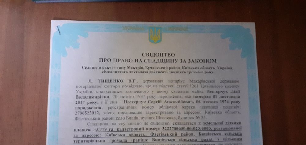 Пай площею 3.08 Га; Продам пай площею 3.08 гектара.Пай розміщений в селі Бишів Фастівський район Київська область,пай вільний від оренди.Ціна 35 $ за одну сотку.
