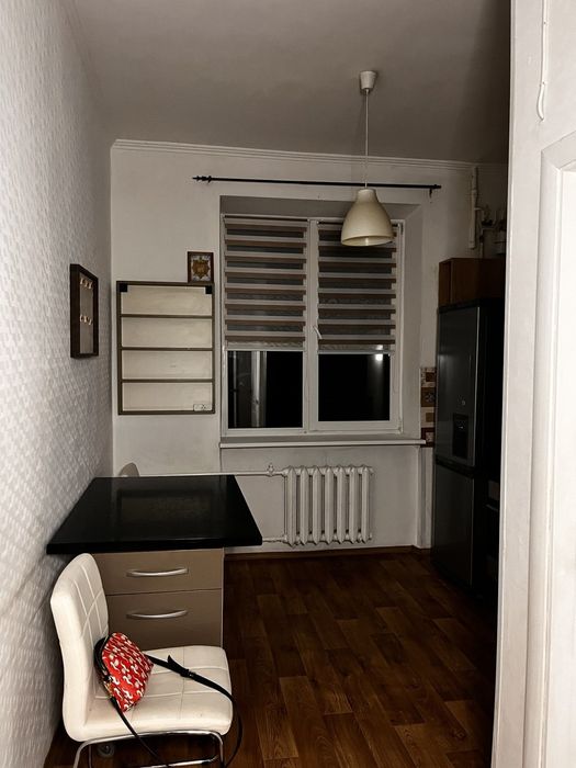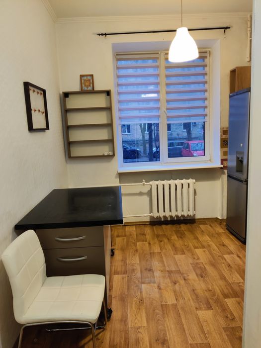 Зроблений косметичний ремонт. В кімнатах- дерев'яний паркет. Можливе часткове доукомплектування меблями ( стіл, стілець). Є необлаштований великий балкон з підвалом.