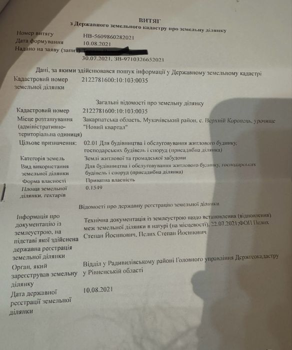 "Земельна ділянка 15,5 соток біля озера, Верхній Коропець"; Продам земельну ділянку під забудову с. Верхній Коропець, Мукачівський