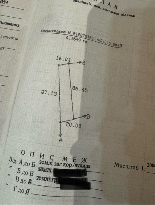 | Земельна ділянка: |