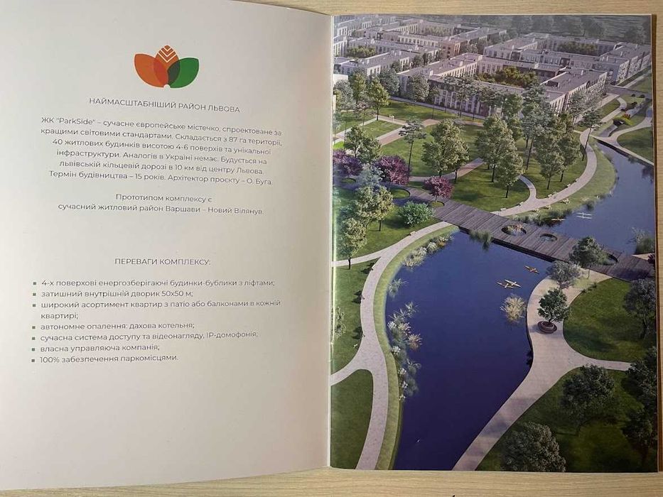 20 га скверів, озеро, водний парк;