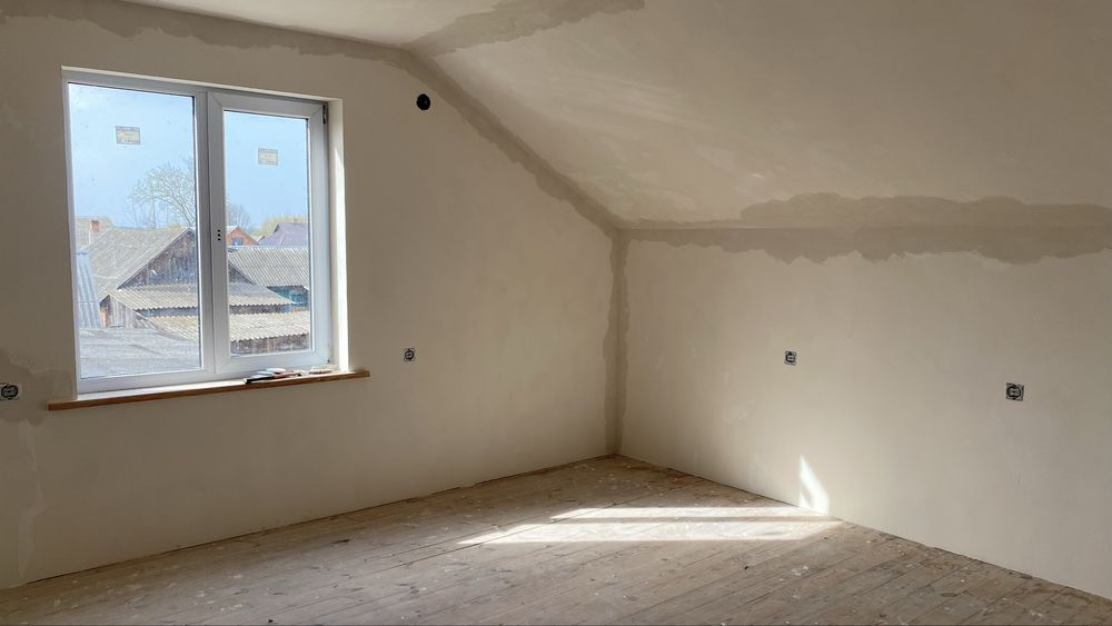 В новобудові: на другому поверсі 4 спальні майже повністю готові, на першому поверсі кухня, прихожа, коридор, ванна і котельня. Закуплене все для теплої підлоги, стоїть новий твердопаливний котел, куплені 2 вхідних дверей ( в т. ч. в котельню)
