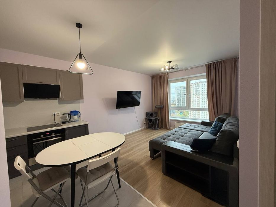 Квартира полностью меблирована, в наличии необходимая техника: холодильник, стиральная машина, телевизор, электрическая плита, духовой шкаф, посудомоечная машина.