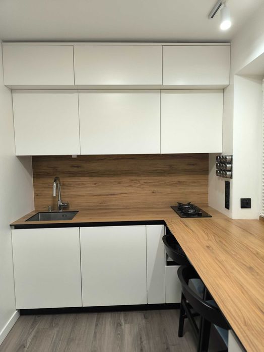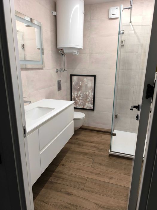 Нові сантехніка (Німеччина), електрика, радіатори опалення (Італія), міжкімнатні двері (Польща), екологічна підлога (Німеччина), керамограніт (Іспанія), тепла підлога у ванній кімнаті та на балконі, система захисту від протікання, кухня під замовлення (вся фурнітура Blum, HPL, МДФ), гардеробна (IKEA), диван 3м з реклайнером, тумба під ТВ МДФ, дерев’яні ліжка з підсиленими ламелями, ортопедичні безпружинні матраци ЕММ, блекаут штори плісе.