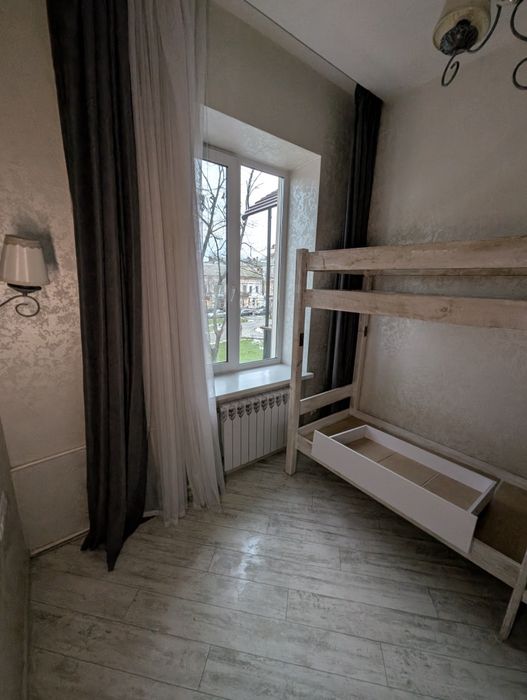 В одній із кімнат двохярусне ліжко з матрацами, в іншій двохспальне ліжко (якщо не потрібне можна вивезти).